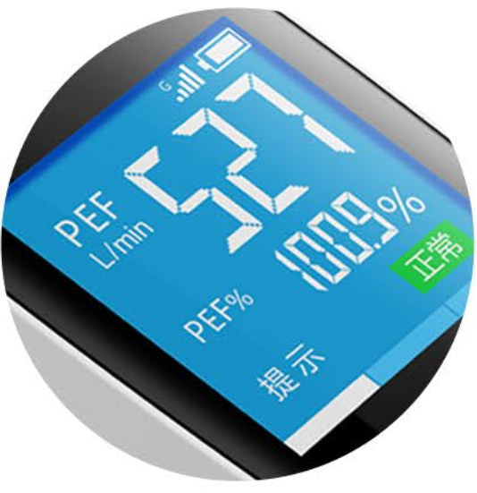 精準測量肺功能指標,包括呼氣流量峰值PEF、用力肺活量FVC和第一秒用力呼氣流量FEV1,并通過(guò)測量值和預計值的比率顯示測試者的狀況。